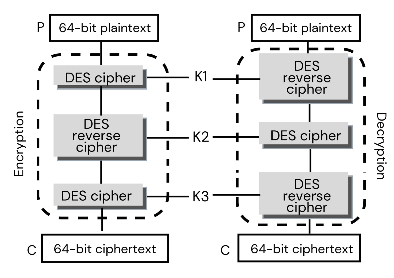 4) At long last, scramble the yield of stage 2 utilizing single DES with key K3.