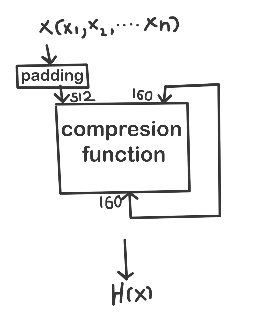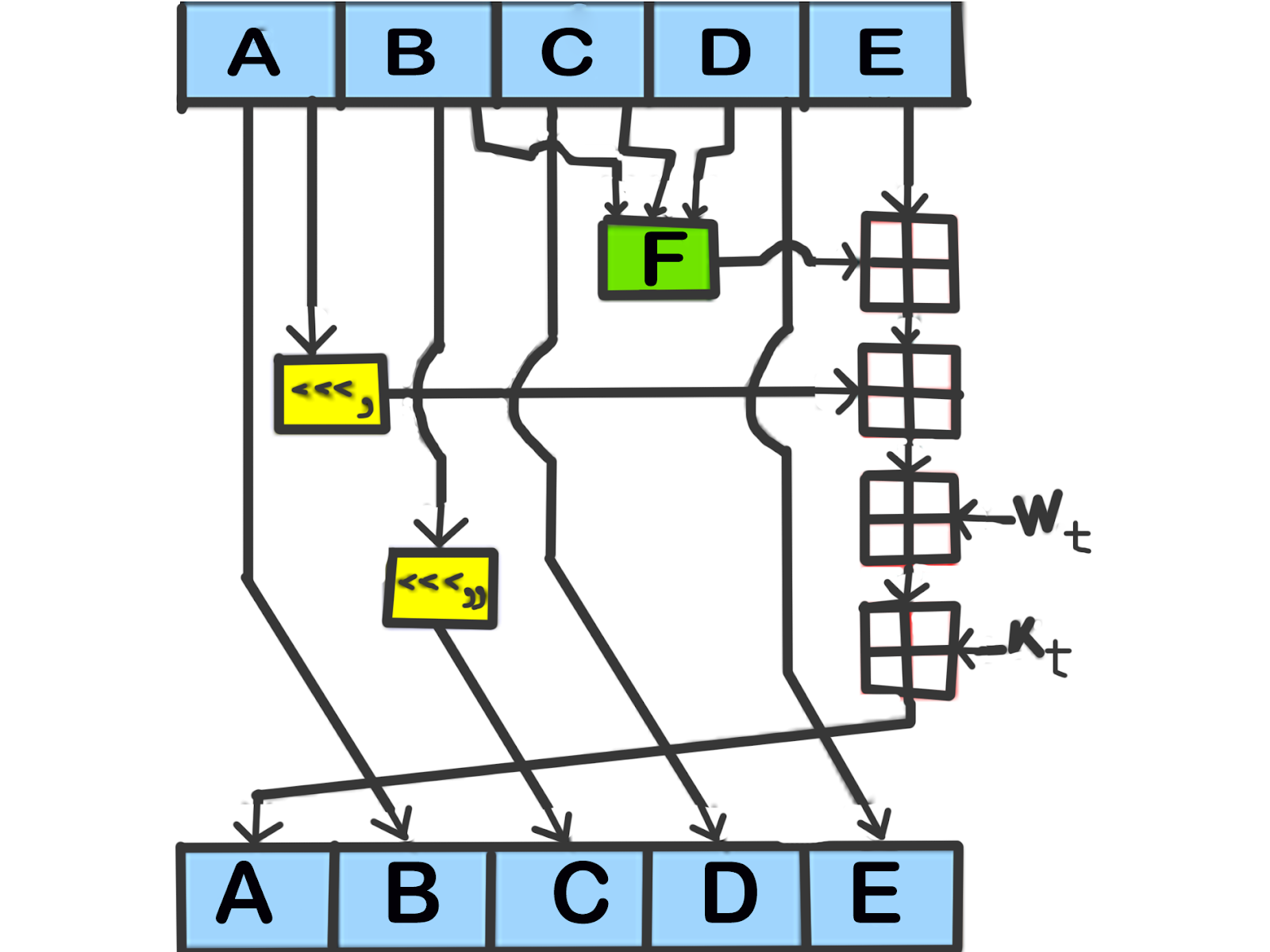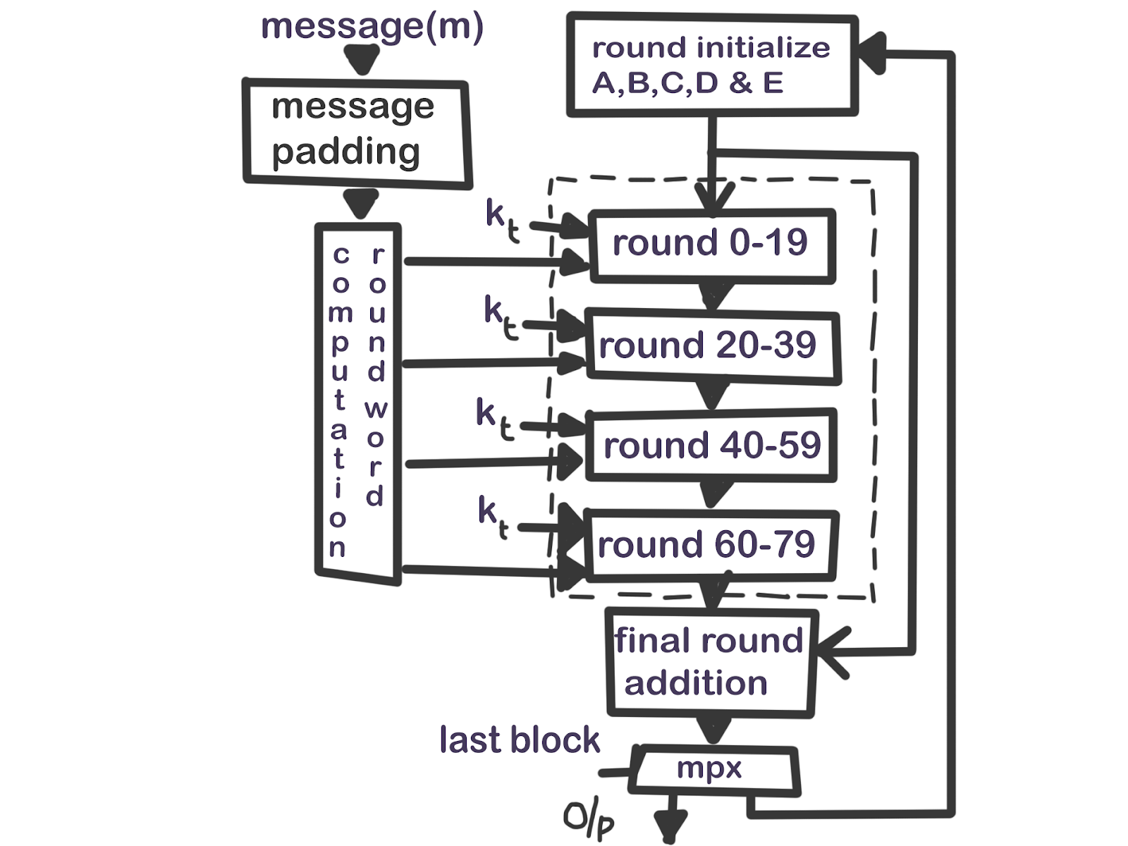 number for SHA-1), and execute the following steps on each chunk(512 bits)